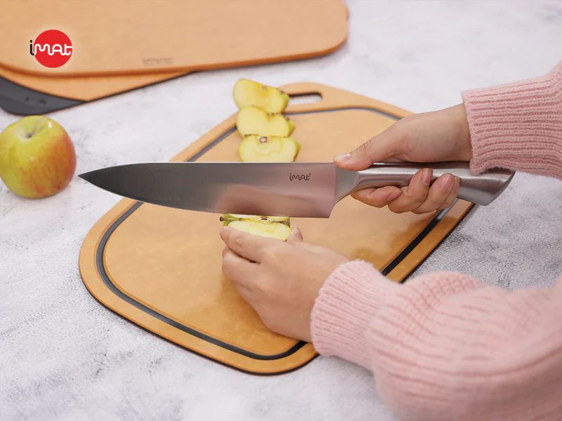 Bộ 3 dao đa dụng : 01 Dao gọt 5" đa năng iMat: dài 24 cm (cán) I 01 Dao Chef đa năng iMat: dài 34.4cm (cán) I 01 Dao Băm chặt, thái bản dày iMat: dài 32.4cm (cán)