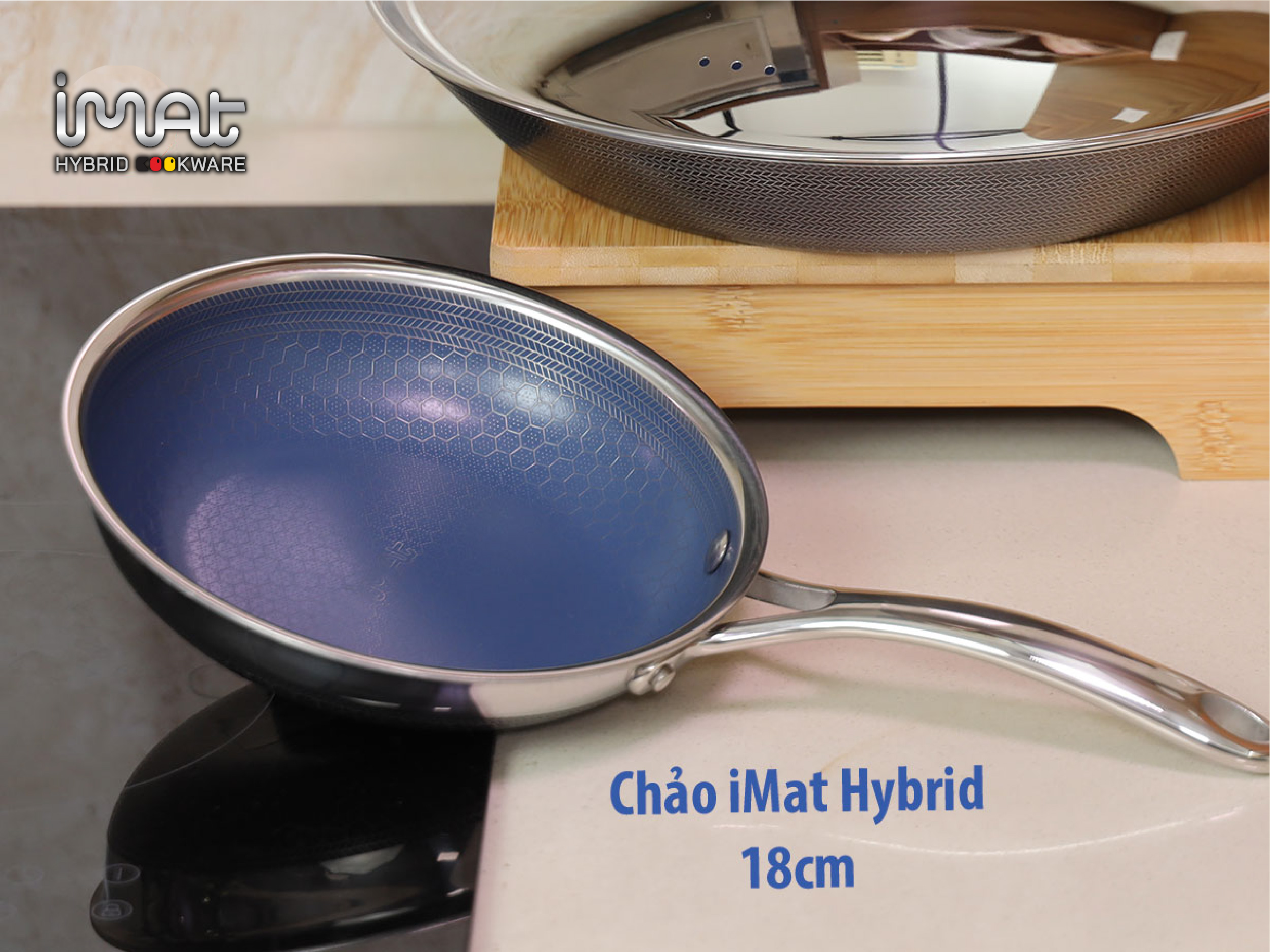 CAM KẾT PHÂN PHỐI SẢN PHẨM CHÍNH HÃNG BẢO HÀNH ĐỔI MỚI CHO LỚP SẢN CHỐNG DÍNH BONG TRÓC TRONG 12 THÁNG. Chảo iMat Hybrid kết hợp giữa inox với chống dính nên đặc biệt