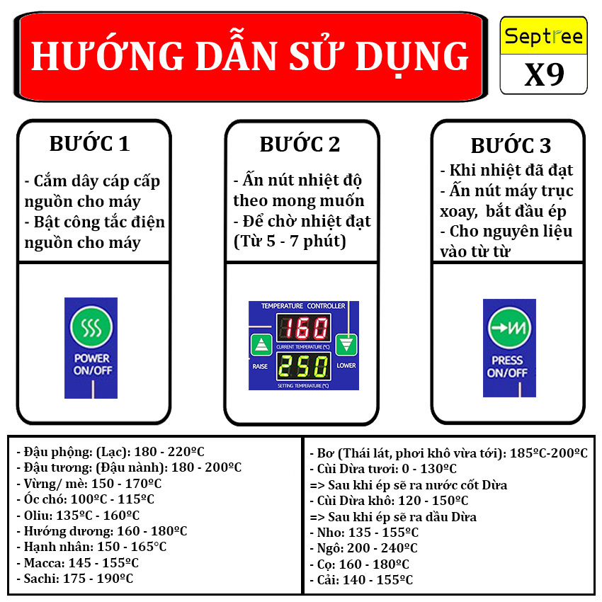 Hướng dẫn sử dụng máy ép dầu thực vật Septree X9