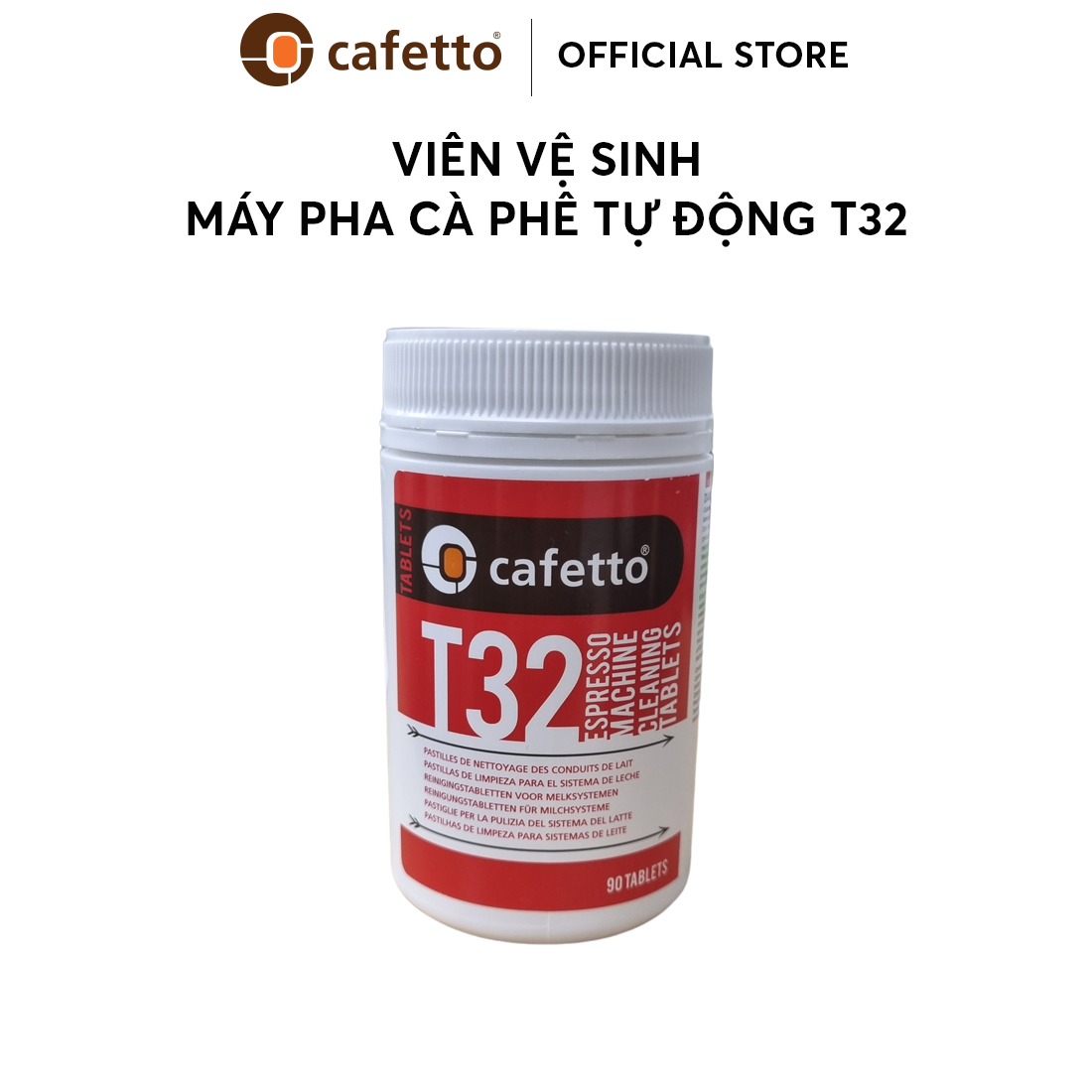 Viên vệ sinh máy pha cà phê tự động Cafetto T32 (90 Viên) - Hiệu suất cao - Loại bỏ hoàn toàn dầu và cặn cà phê khỏi họng pha chế - Công thức không