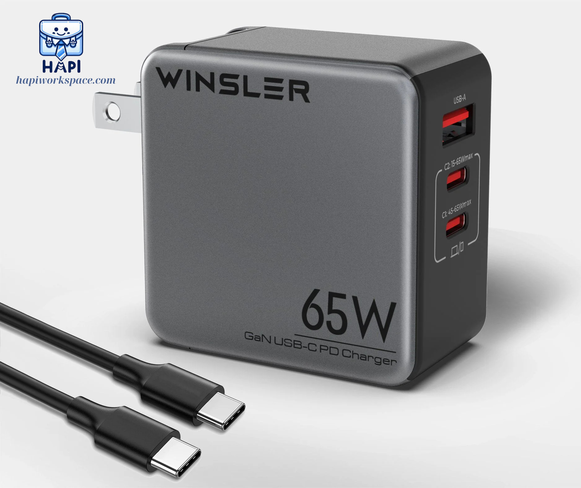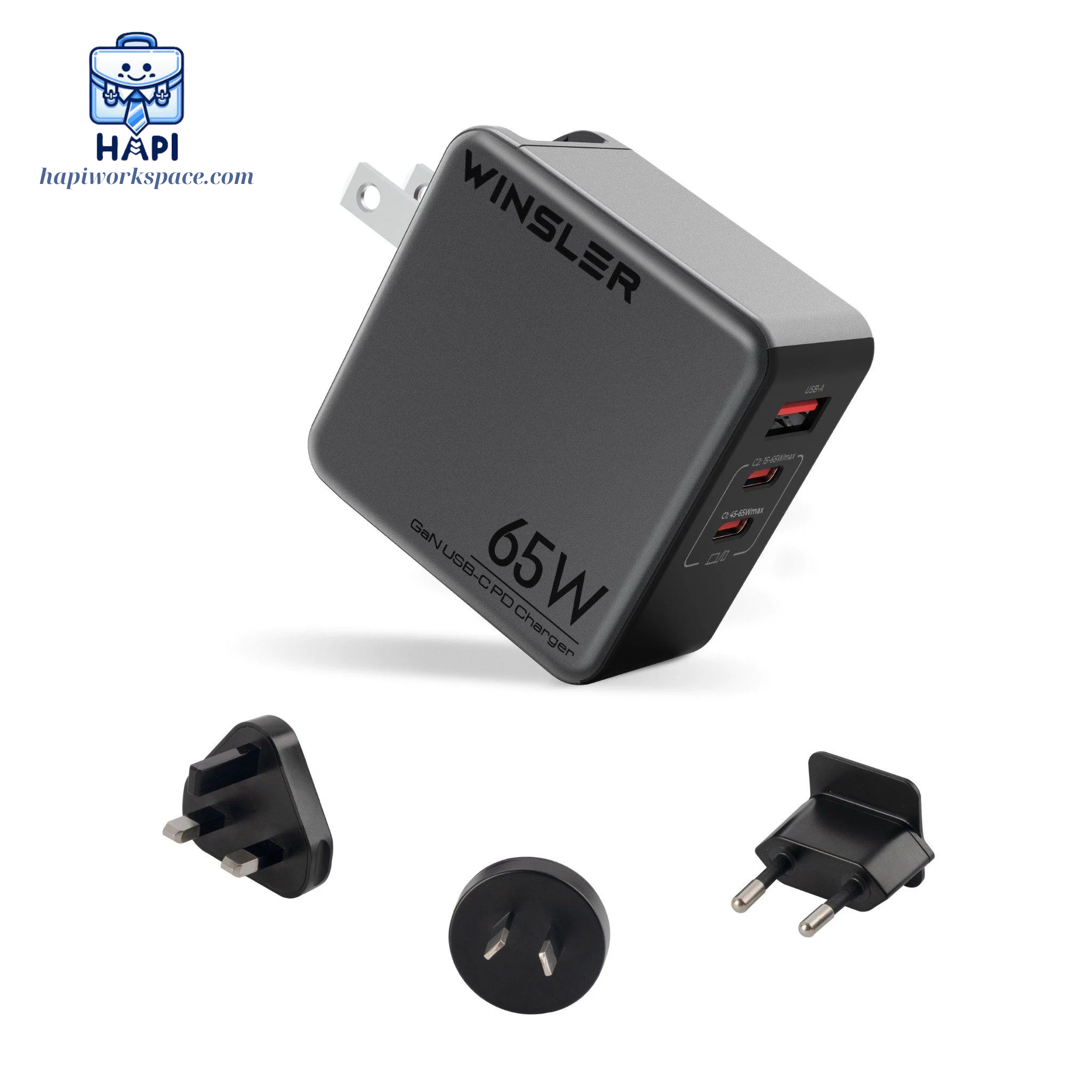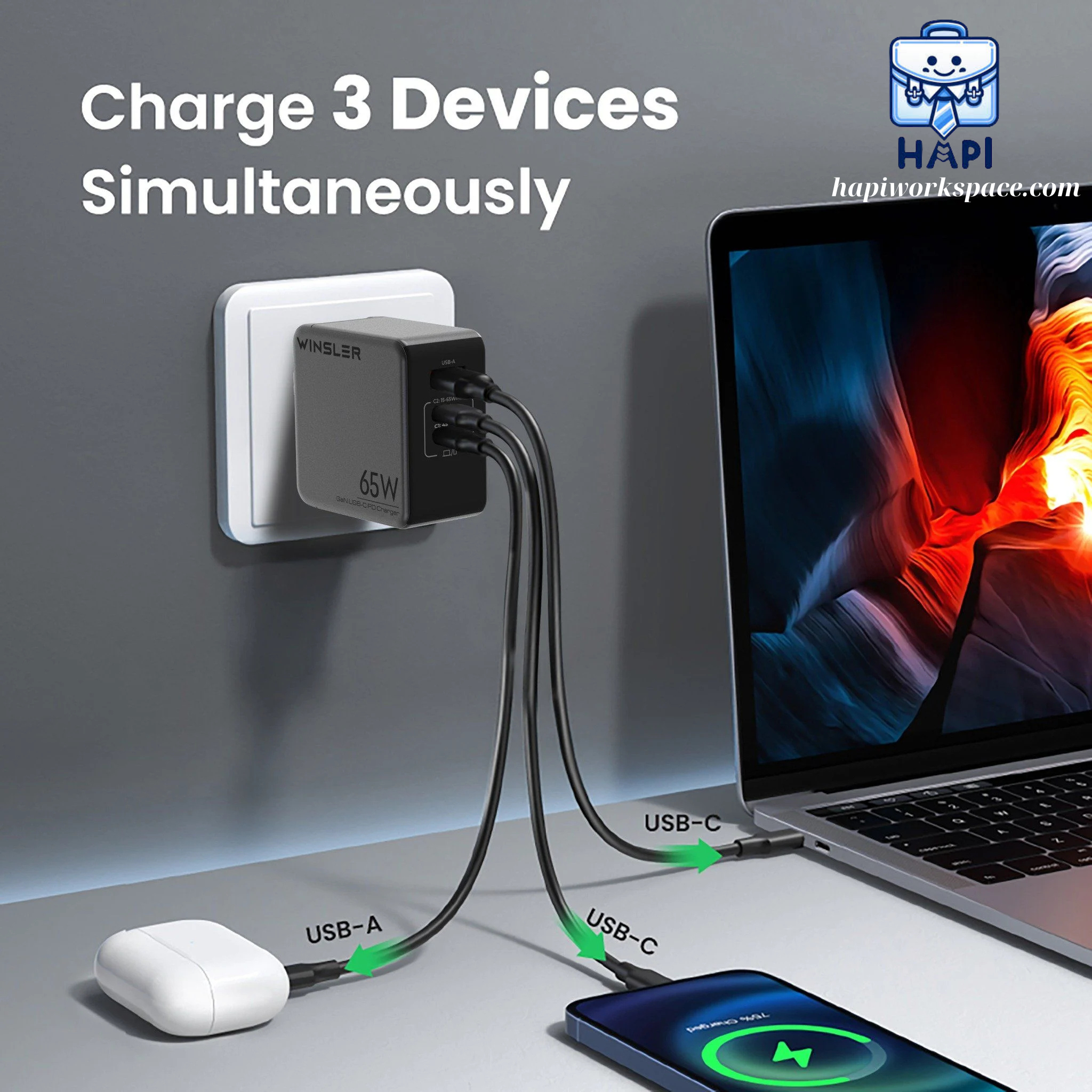 ✨Hàng chính hãng Winsler GaN WS-65W2C1A - Củ sạc nhanh 65W cho 'iPhone', 'Macbook', 'Android', 'iPad' với 2 cổng Type-C, 1 USB-A tiện lợi