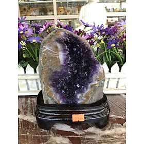 Mua tại TiktokChất liệu: Đá thạch anh tím Khối lượng: 2,2 kg Kích thước: Cao 18 cm Hốc thạch anh tím - động thạch anh tím là sự kết tinh của các tinh thể thạch anh tím nhỏ li ti sáng lấp lánh được bao bọc bởi lớp đá thô bên ngoài, tạo ra một trường khí năng lượng cả trong lẫn ngoài, cát khí tốt sẽ được tích tụ bên trong lòng của hốc thạch anh và giữ lại vượng khí, tài lộc cho gia chủ. Vị trí đặt: Để bàn làm việc, phòng khách, trưng bày, bàn học, bàn thờ thần tài, cửa hàng kinh doanh, két sắt, quà tặng ý nghĩa,