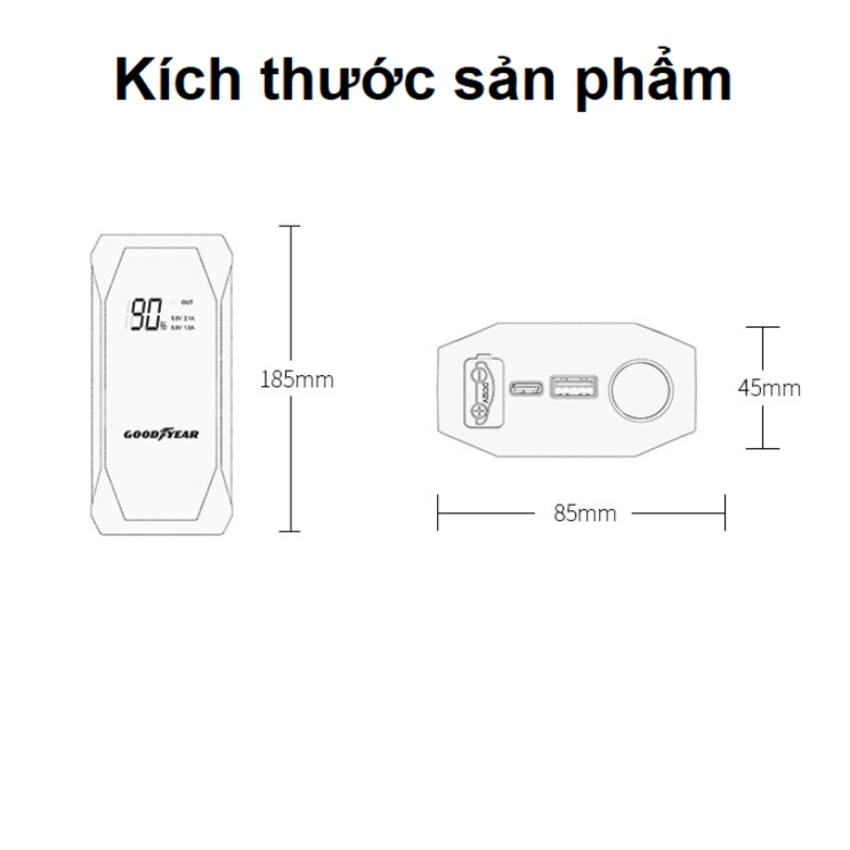 Bộ kích nổ kiêm bơm lốp ô tô và sạc dự phòng Goodyear GY 5296
