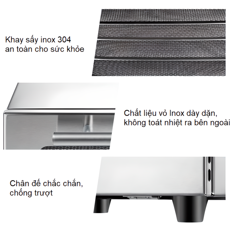 - Có 5 khay lưới inox + 1 khay đặc hứng đồ, nước rớt
