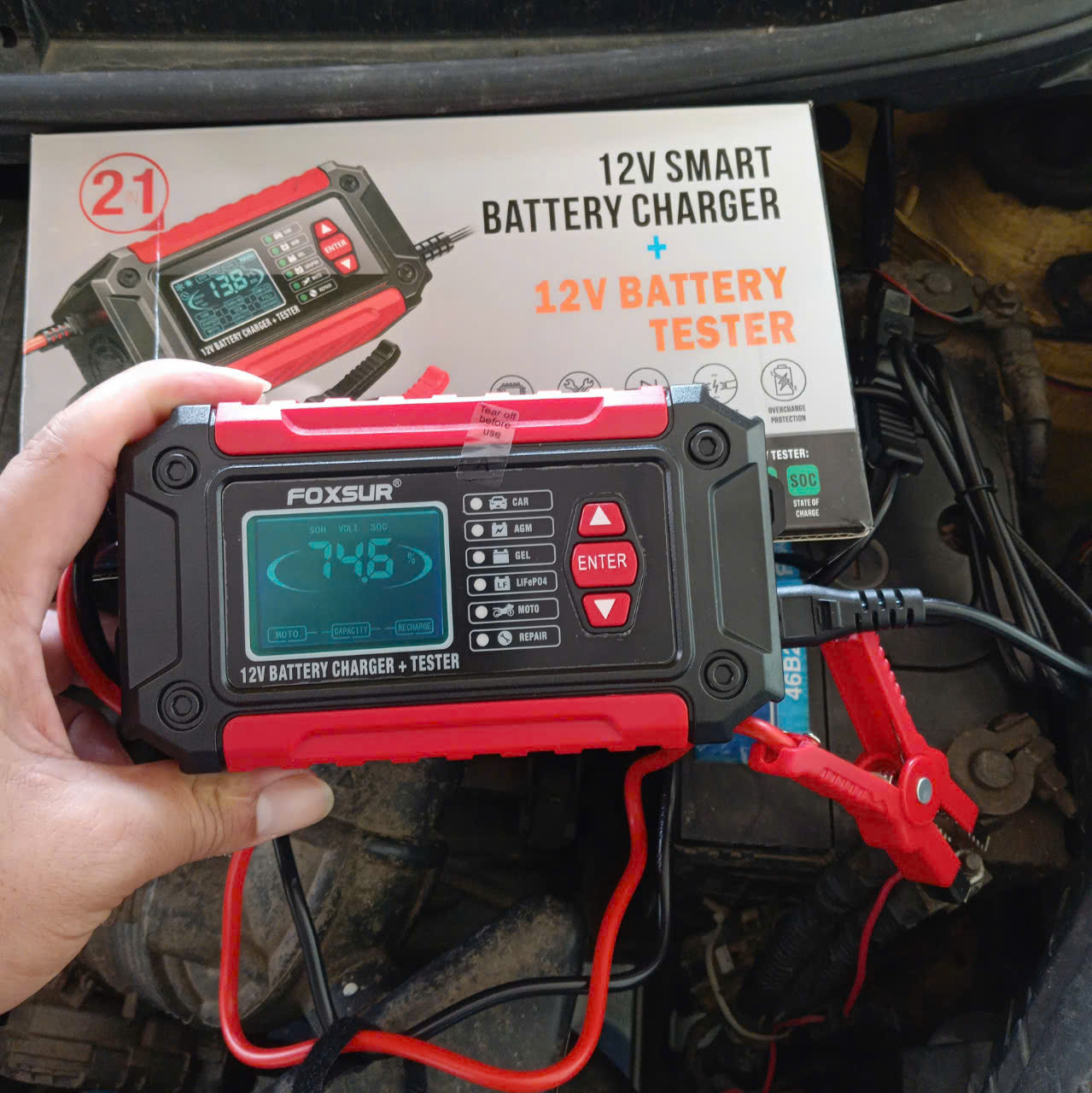 Hàng Nhật: Bộ Sạc Và Test Bình Ắc Quy Thông Minh 2IN1 FOXSUR 12V Công Nghệ Hiện Đại