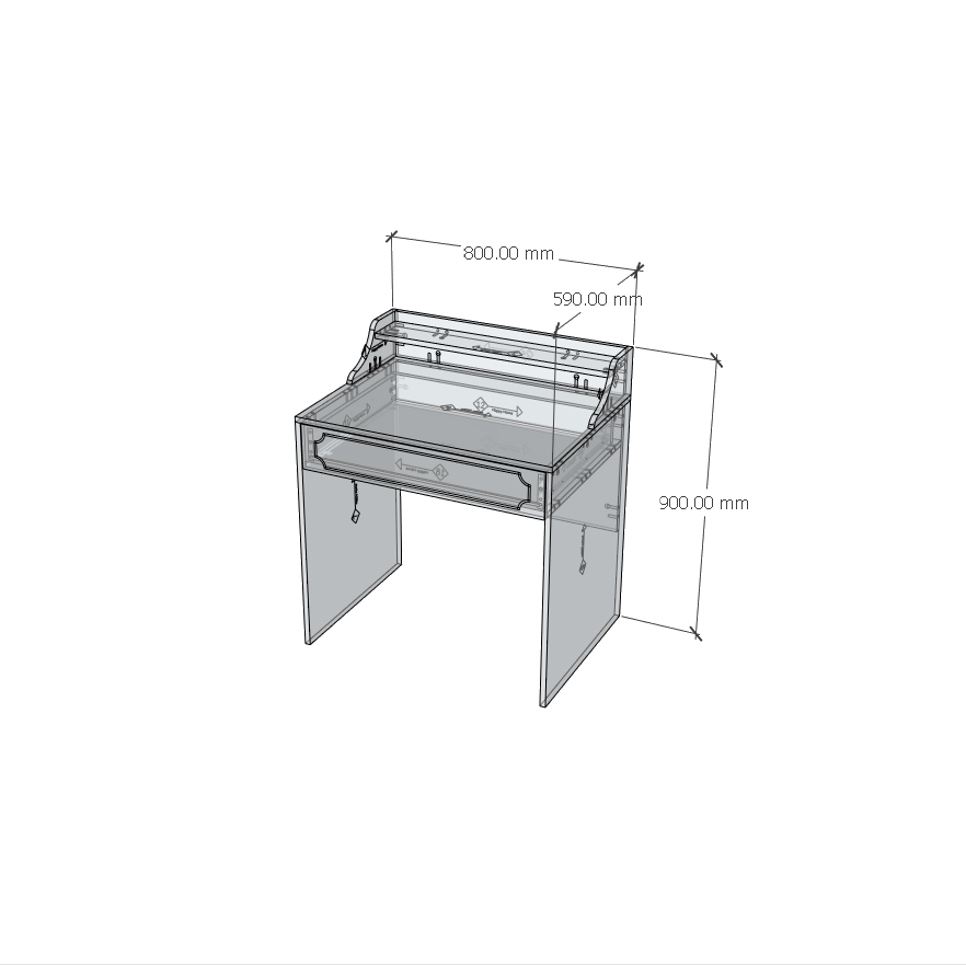 Sản phẩm có kích thước: 1000 x 400 x 750 mm. Gương tặng kèm không bảo hành Bộ bàn trang điểm Fulvia được làm từ chất liệu chính là sắt hộp 20x40 dày 1.2 ly sơn tĩnh