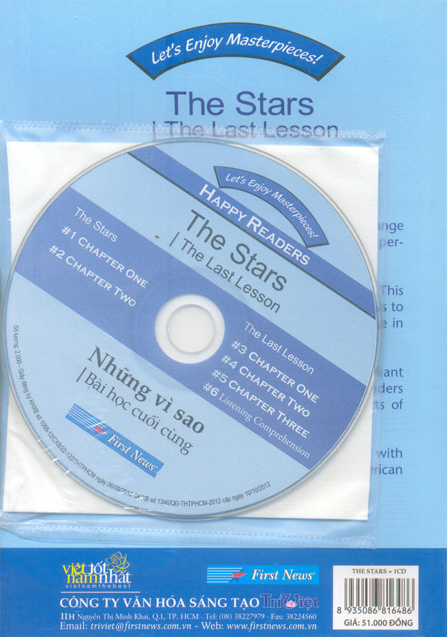 Bộ sách Happy Reader được biên soạn theo một chương trình đặc biệt phù hợp cho những người mới bắt đầu, những người chưa hài lòng với khả năng Anh ngữ của mình hay cho các em học sinh ở tất cả các cấp học. Happy Reader được biên soạn theo năm cấp độ, từ cấp độ cơ bản dành cho những người mới bắt đầu, với 350 từ, cho đến cấp độ trung bình khá với 600, 800 và tối đa là 1000 từ. Tập Những Vì Sao, Bài Học Cuối Cùng với 450 từ thích hợp cho những bạn mới bắt đầu. Sách có hướng dẫn cụ thể giúp bạn tiếp cận nội dung tác phẩm bằng tiếng Anh một cách dễ dàng hơn. Đây là hai trong số những sáng tác hay của Alphonse Daudet, tác phẩm lôi cuốn độc giả bởi cốt truyện vô cùng xúc động và đầy tính nhân văn. Với Happy Reader - Những Vì Sao, Bài Học Cuối Cùng, hai tác phẩm này sẽ được thể hiện dưới một hình thức mới mẻ và thú vị. Không những giúp nâng cao kỹ năng đọc hiểu tiếng Anh, tập sách còn cho bạn thưởng thức vẻ đẹp của những tác phẩm nguyên bản, điều mà các tác phẩm chuyển ngữ ít khi làm được.