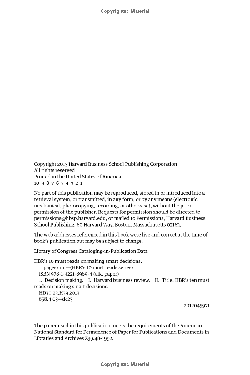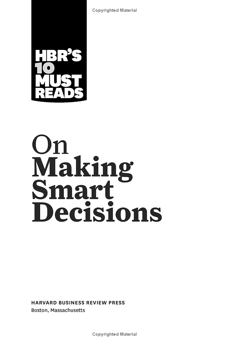 NEW from the bestselling HBR's 10 Must Reads series. Learn why bad decisions happen to good managers - and how to make better ones. If you read nothing else on decision making, read these 10 articles. We've combed through hundreds of articles in the Harvard Business Review archive and selected the most important ones to help you and your organization make better choices and avoid common traps. Leading experts such as Ram Charan, Michael Mankins, and Thomas Davenport provide the insights and advice you need to: