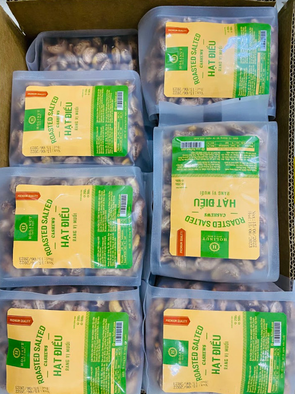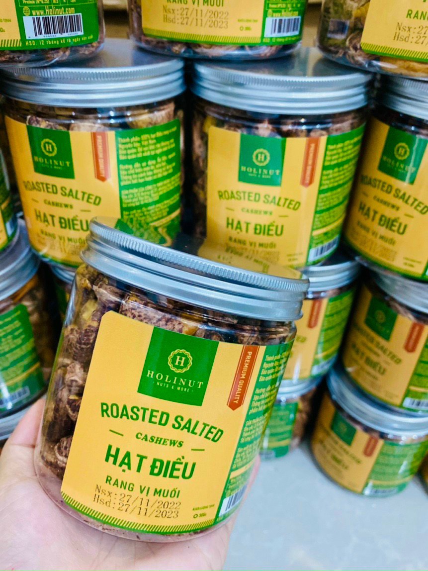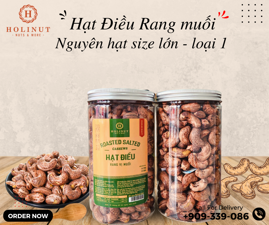 Thông tin hạt điều rang muối Bình Phước. - Thương hiệu: H Holinut Nuts & More - Phân phối bởi công ty TNHH HOÀNG LINH SÀI GÒN - Xuất xứ: Bình Phước (Việt Nam)