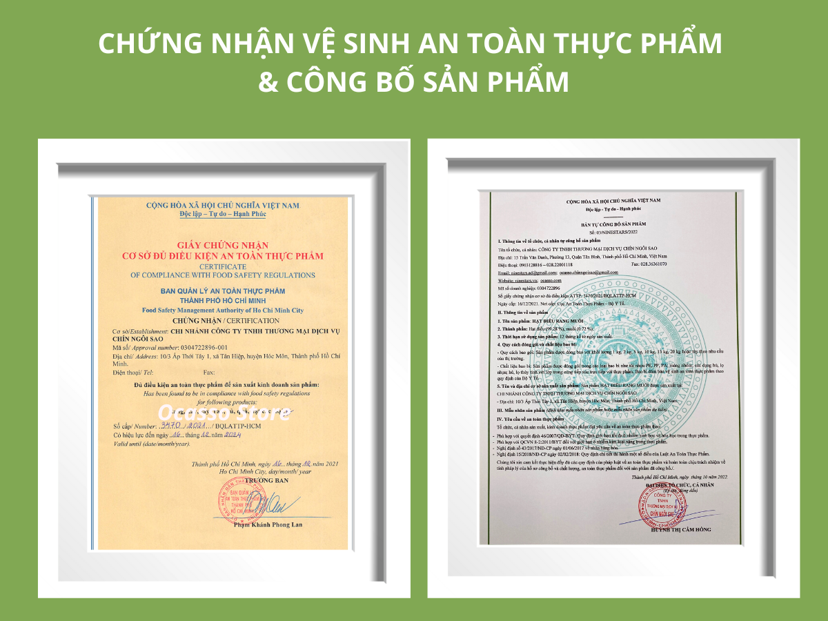 Thành phần : Hạt điều 90%, muối i-ốt 10%
