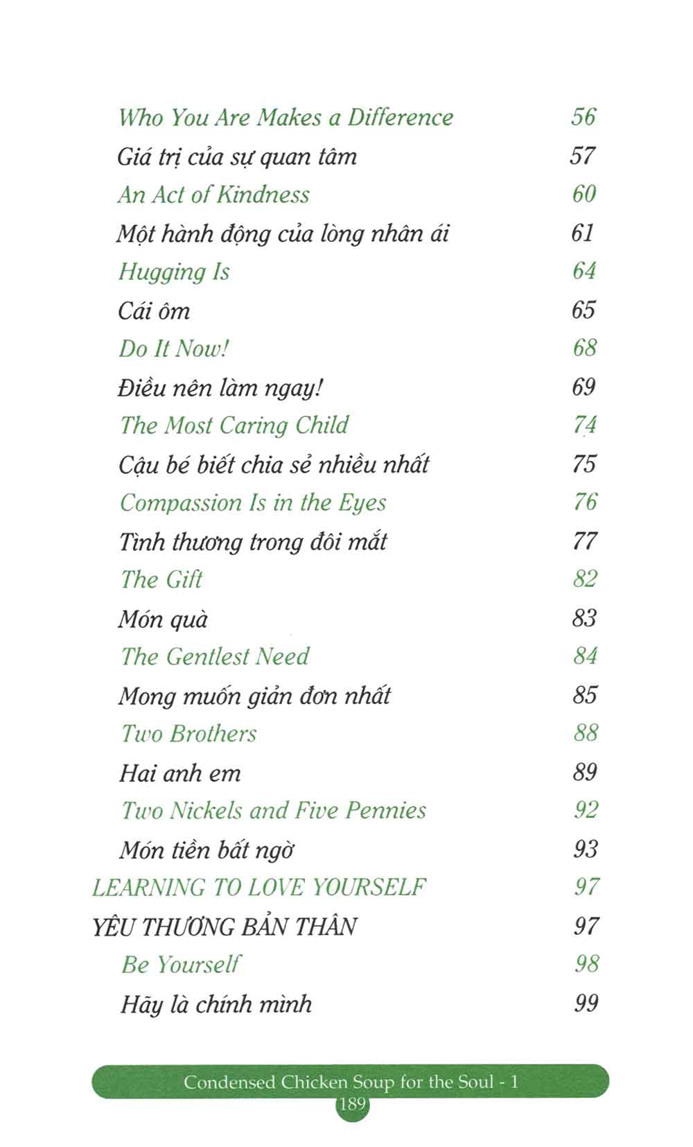 Giá bộ: 316.000 VNĐ ------------ 1. CHICKEN SOUP FOR THE SOUL 4 Công ty phát hành: First News - Trí Việt Tác Giả: Nhiều tác giả Ngày phát hành: 2022 Số trang: 150 trang Kích