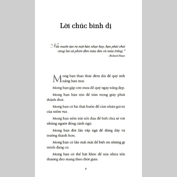 Mã hàng 8935086856307 Tên Nhà Cung Cấp FIRST NEWS Tác giả Nhiều Tác Giả NXB Tổng Hợp TPHCM Năm XB 2022 Trọng lượng (gr) 175 Kích Thước Bao Bì 20.5 x 13 x 0.7 cm Số trang 143 Hình thức Bìa Mềm Giữa nhịp sống hối hả, không ít lần chúng ta để mình bị cuốn theo những lo toan cuộc sống để rồi mắc kẹt giữa vòng xoáy cơm – áo – gạo – tiền. Những lúc như vậy, việc tìm về những khoảnh khắc bình dị đời thường là giải pháp giúp ta tìm lại bình yên cho chính mình và là cơ hội để ta khám phá những góc cạnh mới của cuộc sống. Tuyển tập Từ những điều bình dị gồm 2 cuốn (tập 3, tập 4) nằm trong bộ sách Hạt giống tâm hồn 16 quyển. Chung một chủ đề, hai tập sách Từ những điều bình dị là những câu chuyện dung dị về những con người rất đỗi bình thường trong cuộc sống. Đôi lúc, đó là câu chuyện về cậu bé với chú chó nhỏ khuyết tật. Đôi lúc, lại là câu chuyện về cô con gái không thích tiếng hát của người cha, hay chuyện một bác nông dân luôn sẵn lòng chia sẻ giống ngô tốt cho mọi người xung quanh… Điểm chung của những câu chuyện này là chúng đều chứa đựng những bài học ý nghĩa, mang lại cho bạn niềm lạc quan, niềm tin, tình yêu cũng như thêm trân trọng những gì đang có trong cuộc sống. Cuộc sống vốn dĩ không bằng phẳng. Trên con đường bạn đi, sẽ không thiếu những chông chênh, trở ngại. Tập sách này sẽ là người bạn đồng hành truyền động lực giúp bạn vượt qua khó khăn, thử thách để theo đuổi ước mơ và vươn đến cuộc sống tốt đẹp hơn. Một thông điệp quan trọng khác mà tuyển tập Từ những điều bình dị muốn gửi gắm đó là hãy sẵn sàng dang tay giúp đỡ, chở che người khác, sẵn lòng chia sẻ những nỗi buồn, bất hạnh…, bởi hạnh phúc thật sự không chỉ là nhận mà còn là khi ta biết cho đi. Trong lần tái bản này, tuyển tập Từ những điều bình dị có thay đổi về thiết kế và chỉnh sửa, bổ sung nội dung. Mong rằng cuốn sách tiếp tục là món quà tinh thần ý nghĩa để bạn đọc được tiếp thêm sức mạnh, niềm tin, lòng dũng cảm và tình yêu cuộc sống từ chính những mối quan hệ bình dị, gần gũi nhất trong cuộc sống.