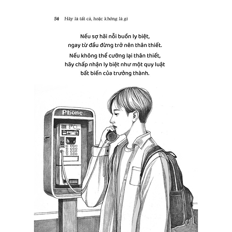 Nếu bạn đang có một ngày chênh vênh như thế, hãy để “HÃY LÀ TẤT CẢ, HOẶC KHÔNG LÀ GÌ” ở bên, tiếp thêm dũng khí để bạn đối diện với cuộc đời không bằng phẳng. Cầm cuốn sách trên tay, bạn sẽ hiểu: hành trình tuổi trẻ dù có chông gai đến đâu cũng không thể cản bạn đi tới tương lai rực rỡ.