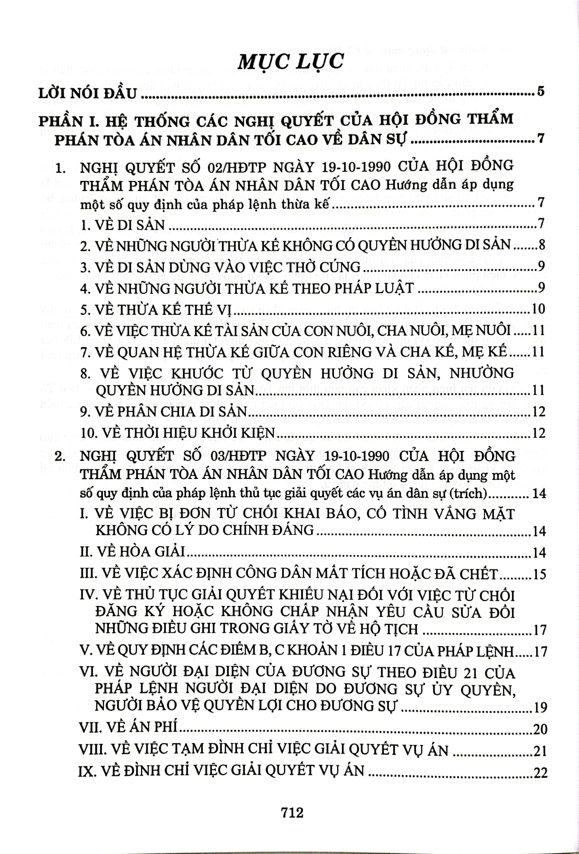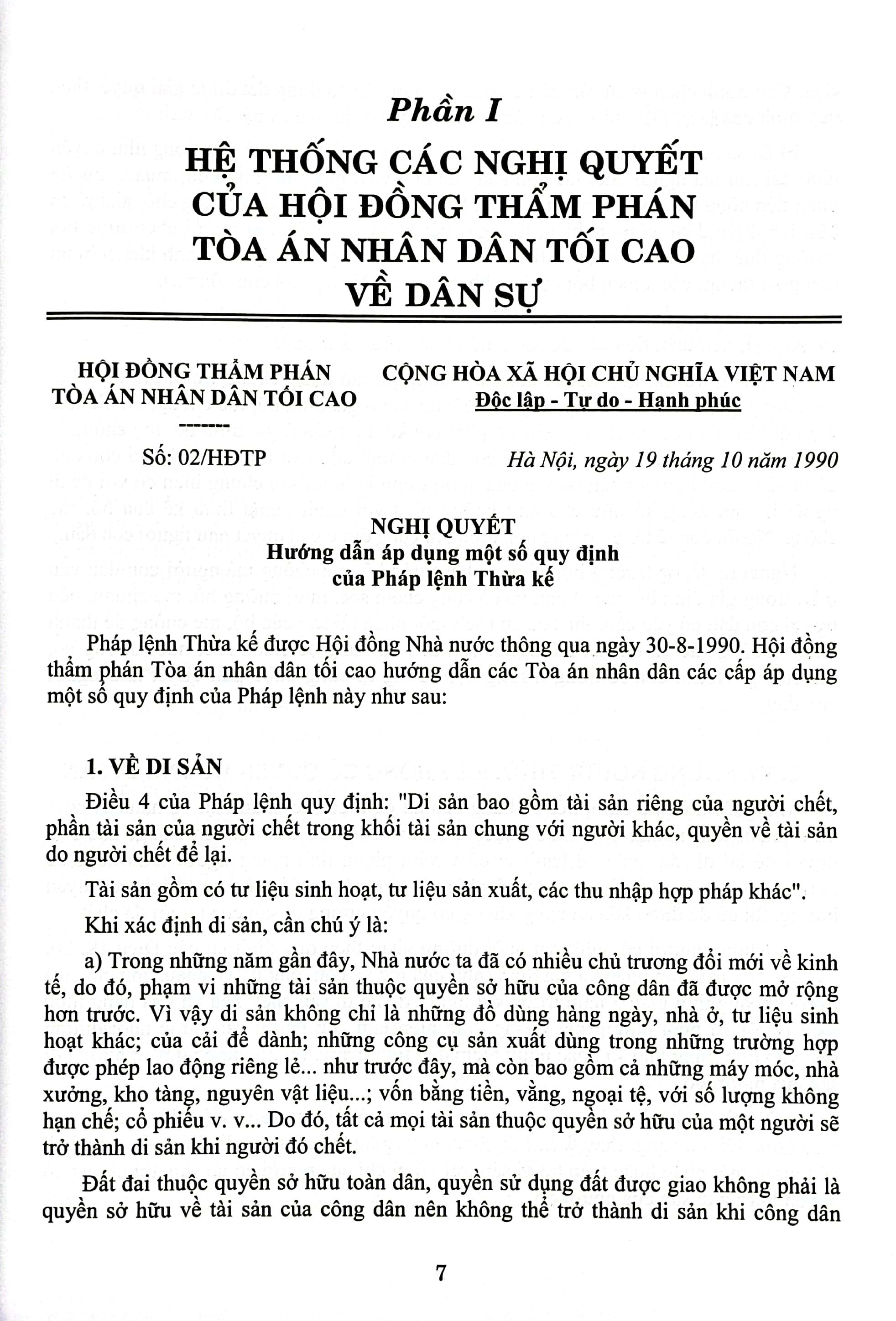 Hệ Thống Các Nghị Quyết Của Hội Đồng Thẩm Phán Tòa Án Nhân Dân Tối Cao Về Dân Sự Và Tố Tụng Dân Sự Từ Năm 1990 Đến 2023 (Dành Cho Phẩm Phán, Thẩm Tra Viên, Hội Thẩm, Kiểm Soát Viên, Luật Sự Và Các Học Viên Tư Pháp)