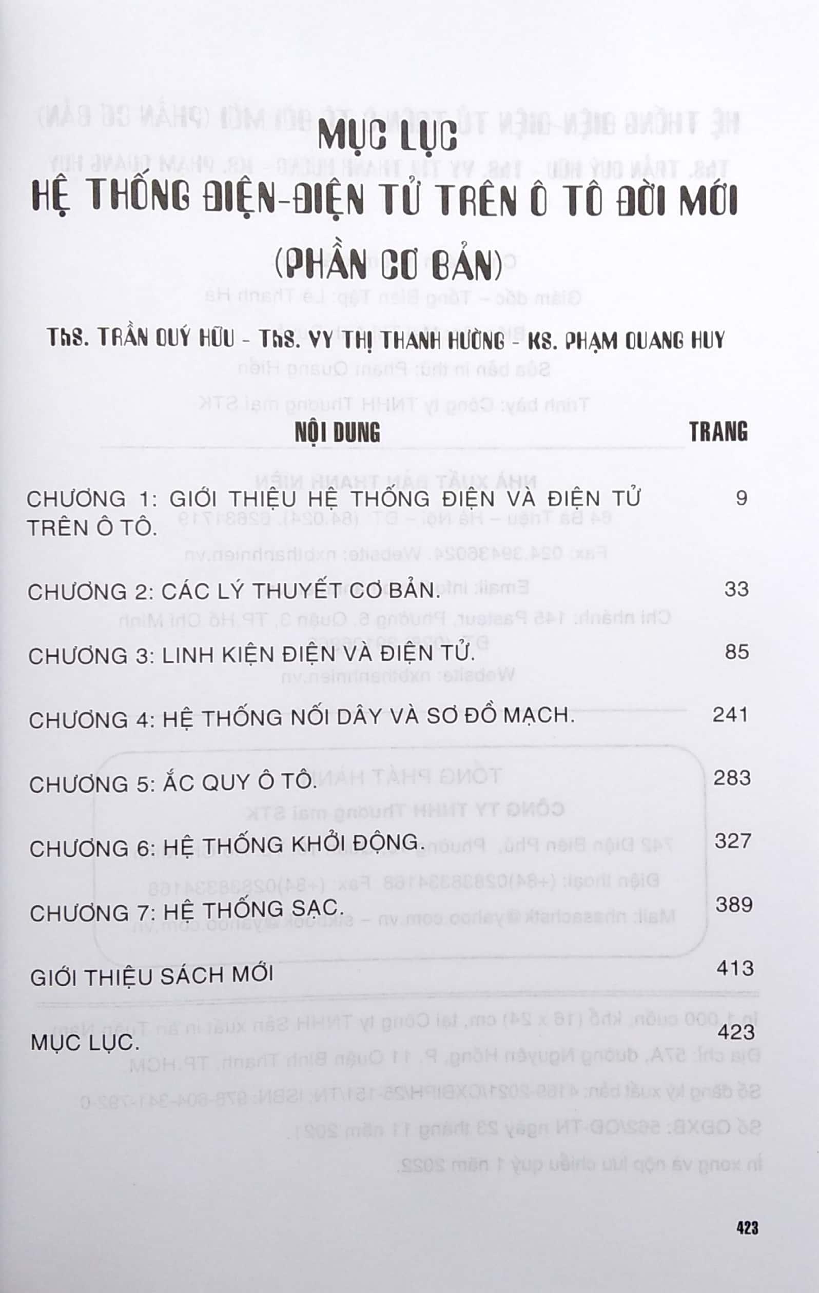 HỆ THỐNG ĐIỆN-ĐIỆN TỬ TRÊN Ô TÔ (LÝ THUYẾT-THỰC HÀNH) là Tập 4 trong bộ sách được trình bày qua 432 trang khổ 16 x 24 cm với các chương sau: CHƯƠNG 1: ĐỘNG CƠ
