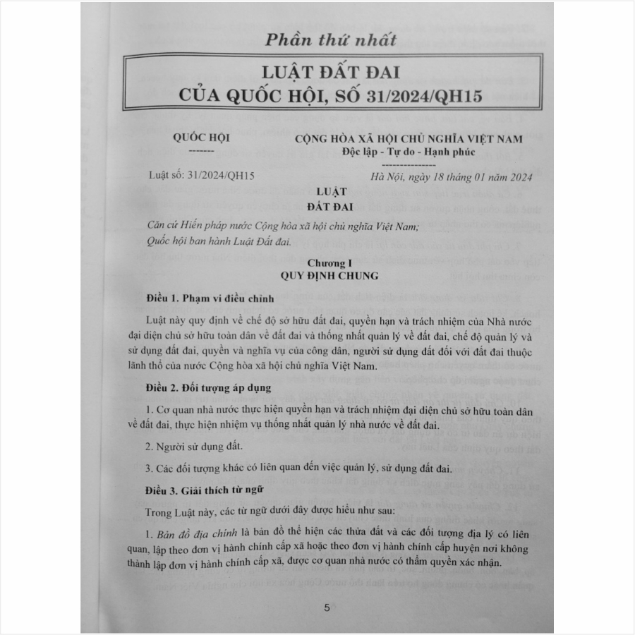 Phần thứ nhất. Luật Đất đai 2024 (có hiệu lực thi hành từ ngày 01/01/2025)