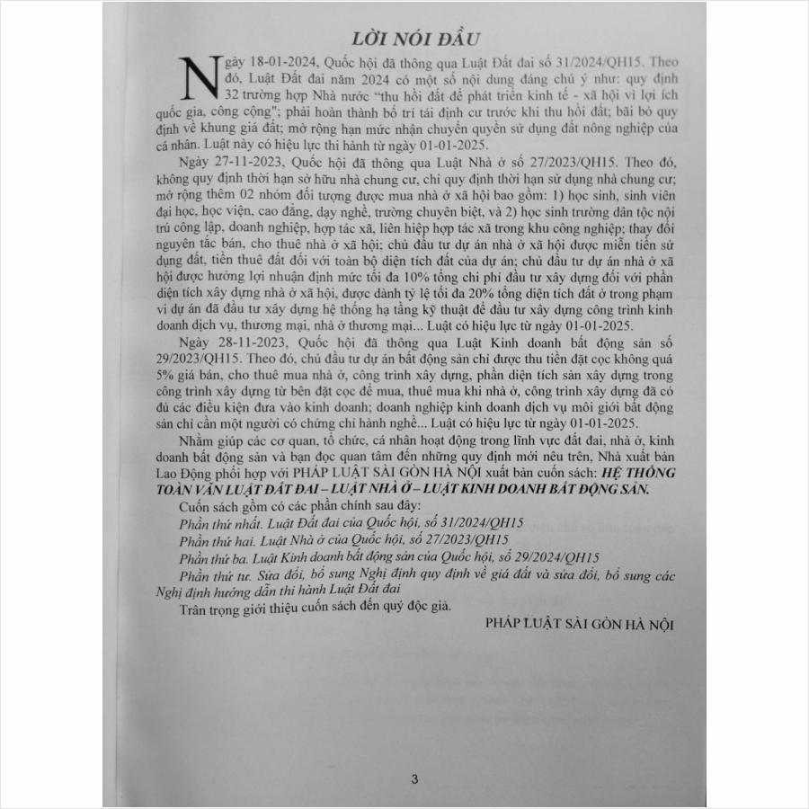 Sách Hệ Thống Toàn Văn Luật Đất Đai 2024 – Luật Nhà Ở 2023 – Luật Kinh Doanh Bất Động Sản 2023
