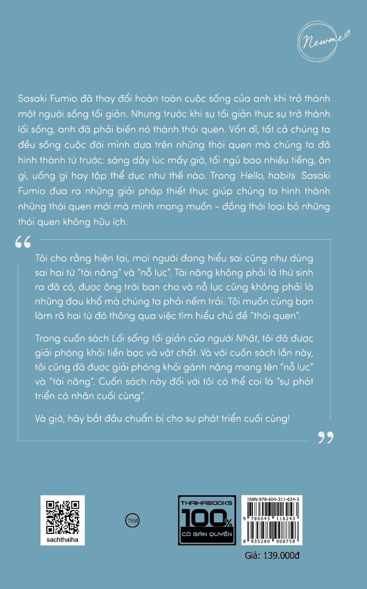 Trong cuốn Lối sống tối giản của người Nhật, tôi đã được giải phóng khỏi tiền bạc và vật chất. Và với cuốn sách lần này, tôi cũng đã được giải phóng khỏi gánh nặng mang tên “nỗ lực” và “tài năng”.