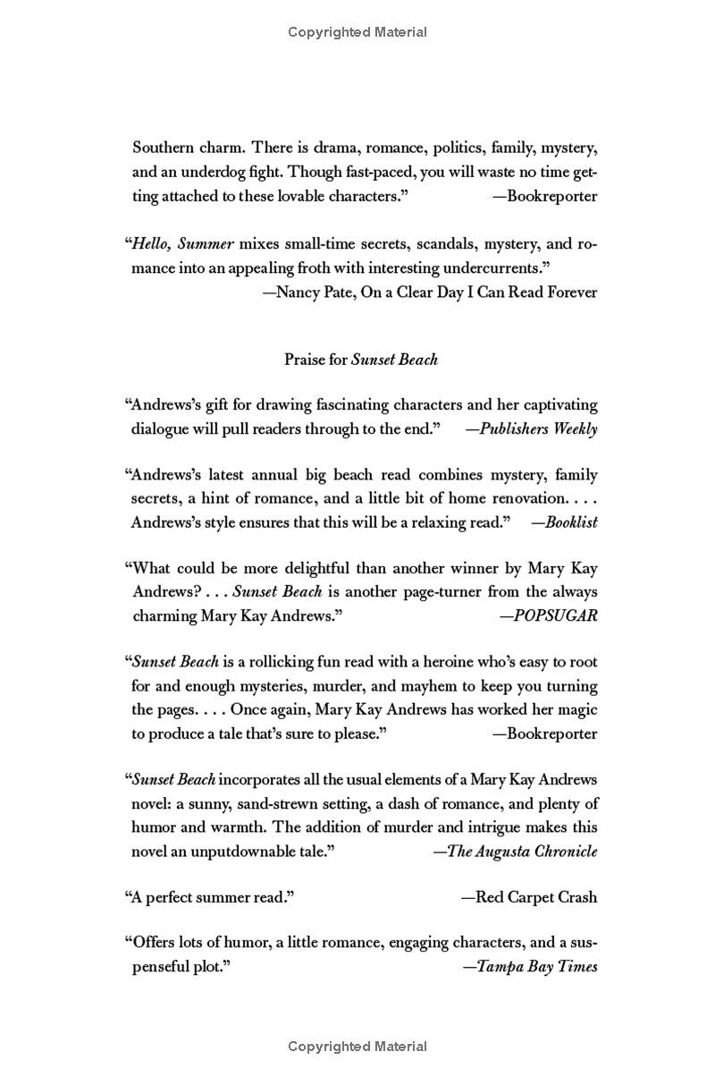 New York Times bestselling author and Queen of the Beach Reads Mary Kay Andrews delivers her next blockbuster, Hello Summer.