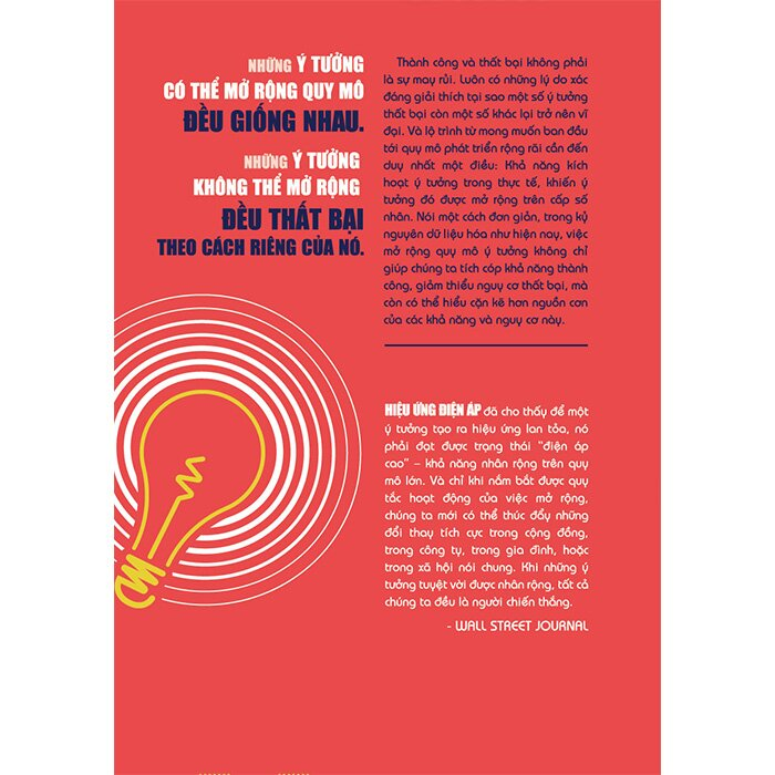 Thành công và thất bại không phải là sự may rủi. Luôn có những lý do xác đáng giải thích tại sao một số ý tưởng thất bại còn một số khác lại trở nên vĩ đại. Và lộ trình từ mong muốn ban đầu tới quy mô phát triển rộng rãi cần đến duy nhất một điều: Khả năng kích hoạt ý tưởng trong thực tế, khiến ý tưởng đó được mở rộng trên cấp số nhân. Nói một cách đơn giản, trong kỷ nguyên dữ liệu hóa như hiện nay, việc mở rộng quy mô ý tưởng không chỉ giúp chúng ta tích cóp khả năng thành công, giảm thiểu nguy cơ thất bại, mà còn có thể hiểu cặn kẽ hơn nguồn cơn của các khả năng và nguy cơ này.