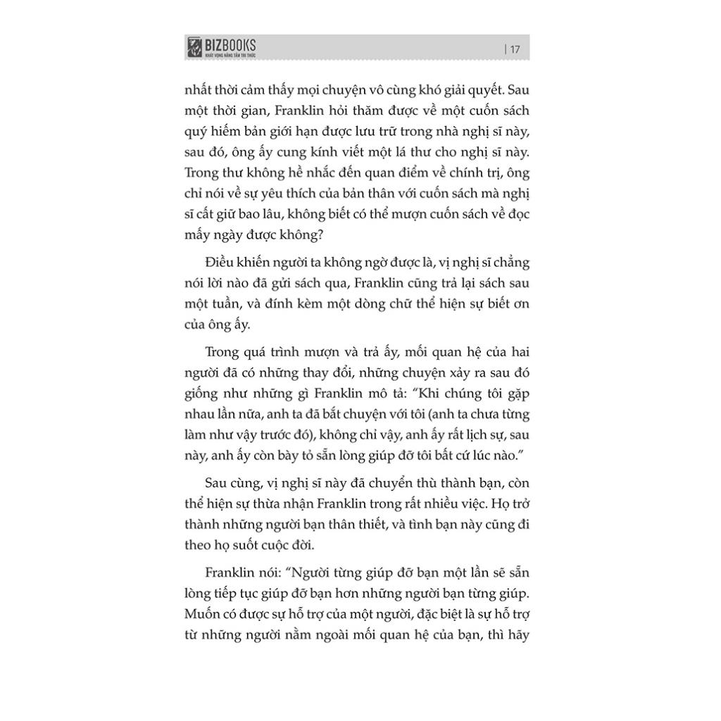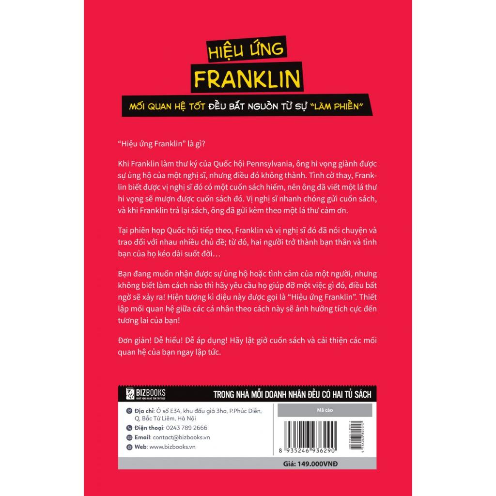 “Hiệu ứng Franklin - Mối quan hệ tốt bắt nguồn từ sự làm phiền” sẽ giúp bạn bước chân vào cuộc sống thực tế thông qua kiến thức tâm lý học phổ thông, dễ hiểu, là một sổ tay về giao tiếp xã hội mà bất kì ai cũng có thể đọc hiểu. Rồi bạn sẽ nhận ra, ngại ngùng khi làm phiền người khác không phải một đức tính tốt, lẩn trốn trong thế giới của bản thân đánh mất liên hệ với thế giới bên ngoài. Mối quan hệ tốt bắt đầu từ chuyện “làm phiền”. Sống ở đời, không thể lúc nào cũng đơn phương độc mã. Biết cách làm phiền người khác là một biểu hiện của EQ cao, cũng là một hình thức khiến đôi bên cảm nhận được sự ấm áp, cảm nhận được giá trị của nhau. Mong tất cả chúng ta đều học được cách mở lòng và nhờ vả người khác một cách đúng đắn.