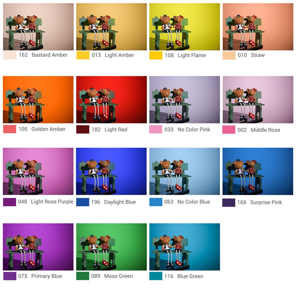 Features: A Selection of 7 colors, 5 pcs of each color for controlling light from your strobes. User can also use combinations of these filters for a lot variation to the color of light. Fastened