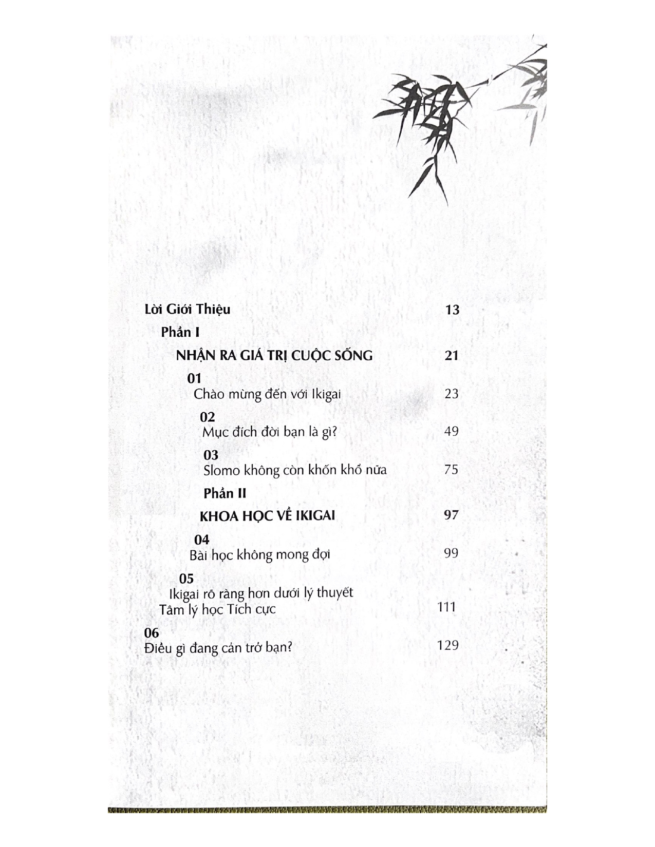Chào mừng đến với Ikigai – giá trị cuộc sống của bạn. Ikigai là “lý do khiến bạn rời khỏi giường vào mỗi sáng”. Nó là những điều bạn làm mỗi ngày, có ý nghĩa với bạn và người khác. Ngay bây giờ, bạn có thể không biết Ikigai của mình là gì, nhưng quyển sách này sẽ giúp bạn tìm ra, thông qua bản đồ Ikigai với bốn hướng đơn giản cần theo: