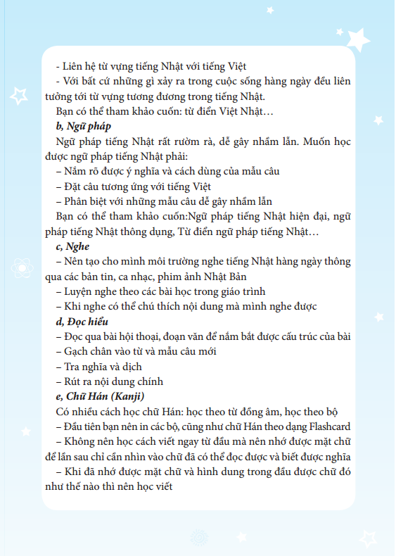 Nhu cầu học tiếng Nhật ngày càng tăng, Tuy nhiên với những người không có thời gian và điều kiện tới các trung tâm dạy tiếng Nhật, thì việc tự học tiếng Nhật trở thành cách học phổ biến nhưng muốn học tốt tiếng Nhật cần phải có phương pháp.