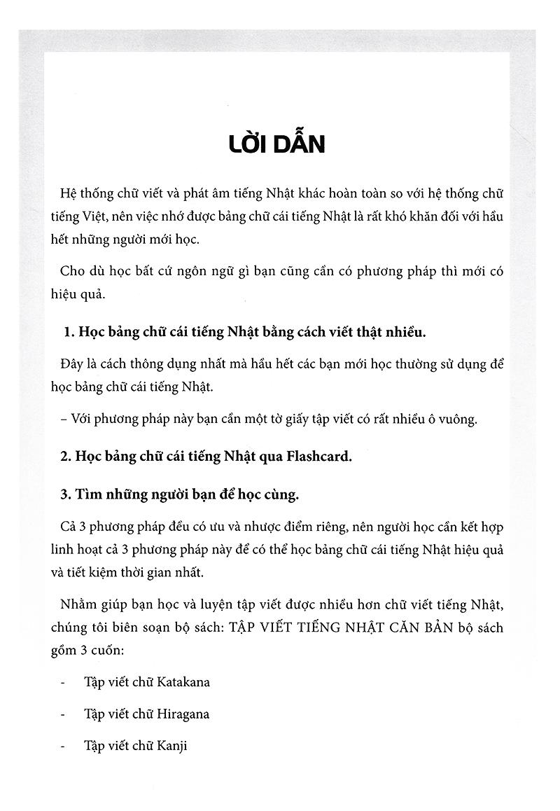 Nhằm giúp bạn học luyện tập viết được nhiều hơn trong việc học và luyện viết chữ Nhật, chúng tôi biên soạn bộ sách: TẬP VIẾT TIẾNG NHẬT CĂN BẢN bộ sách gồm 3 cuốn: