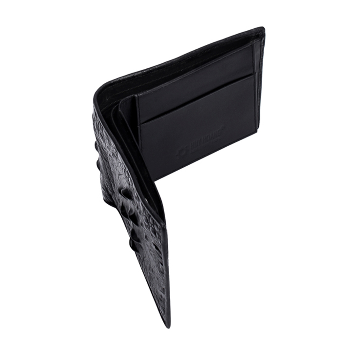 Ví/Bóp nam Huy Hoàng da bò vân cá sấu màu đen 2111
