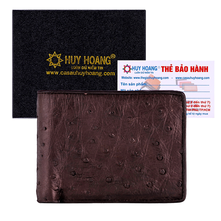Bóp/Ví da đà điểu Huy Hoàng da bụng màu đen, nâu đất, nâu đỏ, vàng bò 2405-06-07-19