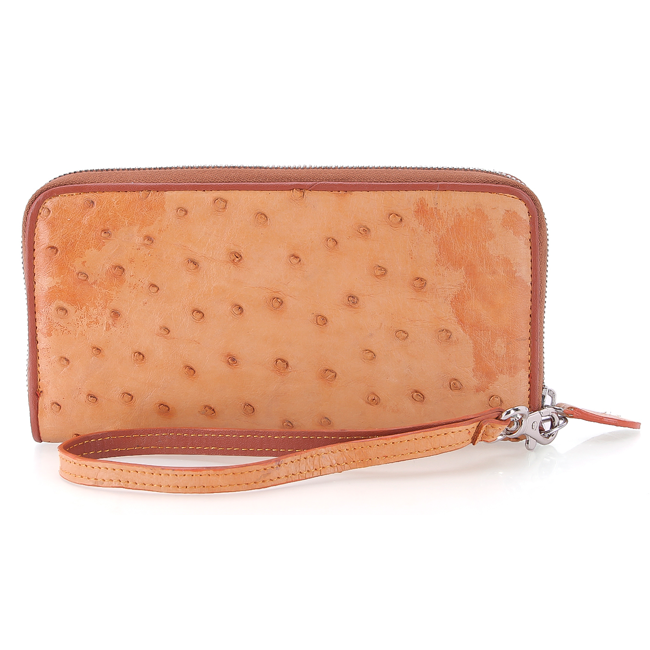 Bóp/Ví da đà điểu Huy Hoàng da bụng kiểu đứng màu nâu đất, nâu đỏ, đen, vàng bò 2408-09-10-18