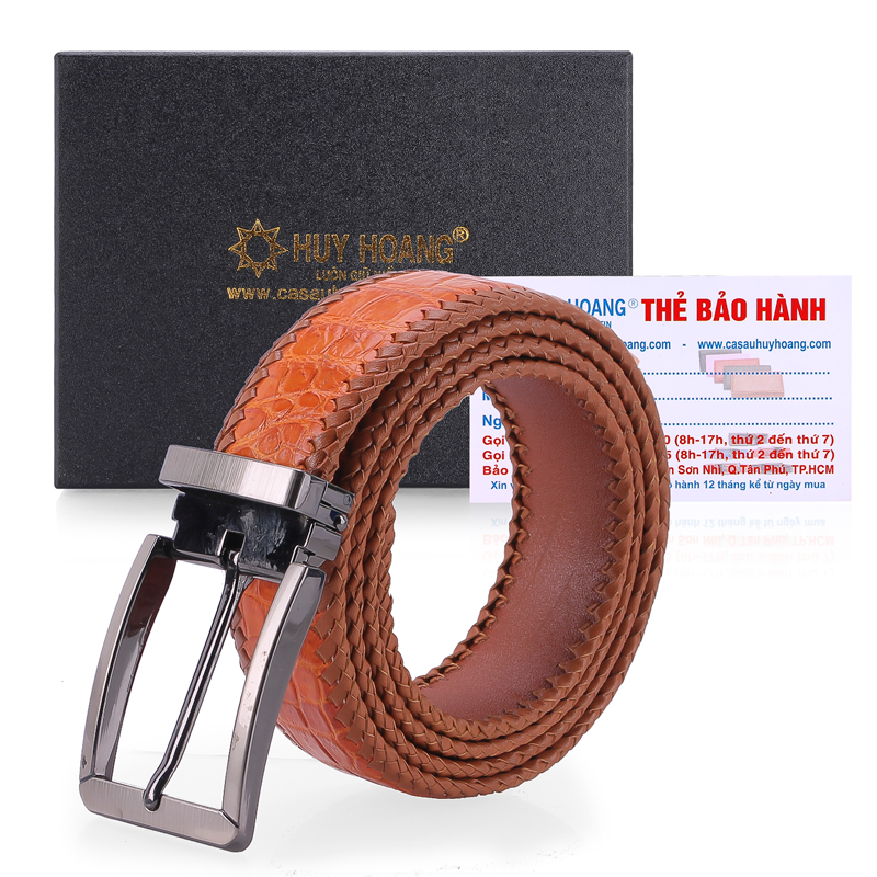 ✨HJ4276-77-78-79 Dây nịt nam da cá sấu Huy Hoàng đan viền đầu kim màu Đen, nâu đất, nâu đỏ, vàng bò