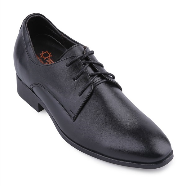 Giày tăng chiều cao Huy Hoàng da bò cột dây màu đen 7723
