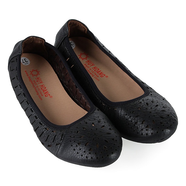 Giày nữ hoa văn Huy Hoàng da bò màu đen 7951