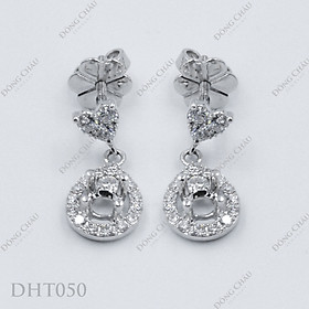 Hoa tai kim cương trái tim tòn ten tròn đính tấm 4 chấu - DHT050
