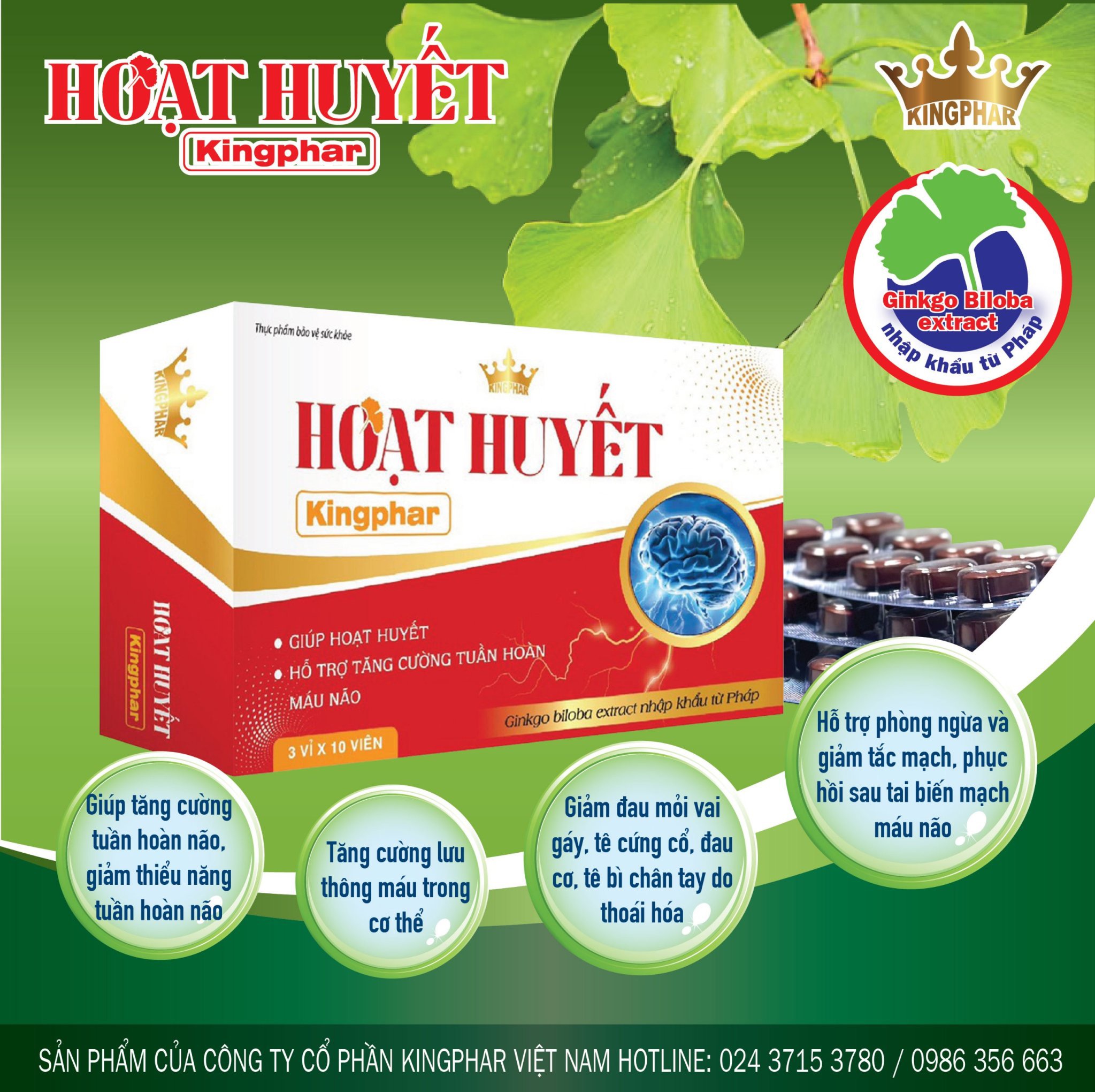 HOẠT HUYẾT KINGPHAR - SẢN PHẨM HOẠT HUYẾT DƯỠNG NÃO ĐỨNG ĐẦU THỊ TRƯỜNG