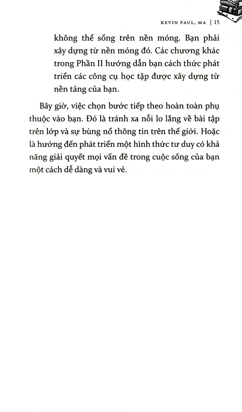 Mọi công việc đều có những quy trình bảo đảm tính hệ thống và kết quả của công việc. Học tập cũng vậy. Kevin Paul giúp cho độc giả thấy được tầm quan trọng của bước chuẩn bị cũng như của việc xác định mục tiêu học tập. Tác giả cũng cung cấp những kỹ năng cần thiết cho việc tạo động lực học tập, ghi chép, ghi nhớ, liên hệ vận dụng và khả năng tập trung.