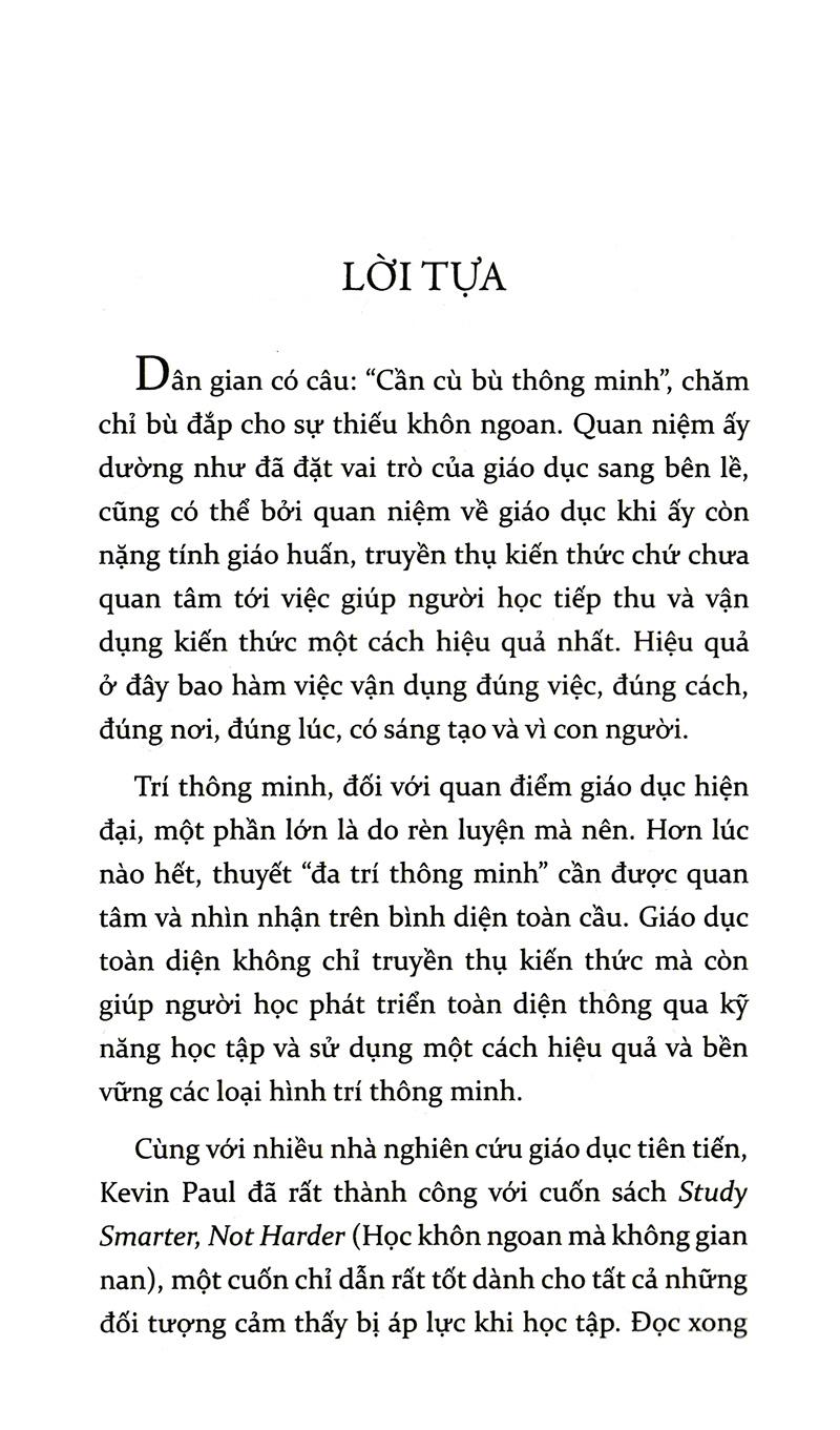 Cùng với nhiều nhà nghiên cứu giáo dục tiên tiến, Kevin Paul đã rất thành công với cuốn sách Study Smarter, Not Harder (Học khôn ngoan mà không gian nan), một cuốn chỉ dẫn rất tốt dành cho tất cả những đối tượng cảm thấy có áp lực trong học tập. Đọc xong cuốn sách, có lẽ lúc đó nhiều người mới thật sự hiểu thế nào là học tập. Cuốn sách giúp người đọc − người học − tìm được đúng cách thức học tập tùy theo nội dung và thời điểm, và khám phá những loại hình trí thông minh của chính m.ình.