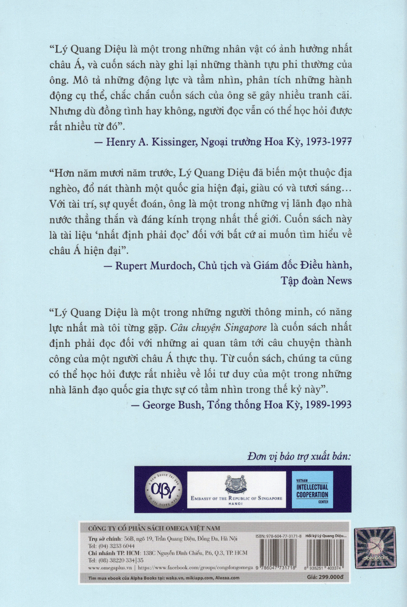 Bộ sách “Hồi ký Lý Quang Diệu” do chính Lý Quang Diệu viết gồm 2 tập: Tập 1 - "Câu chuyện Singapore" và tập 2 - "Từ Thế giới thứ ba vươn lên thứ nhất".