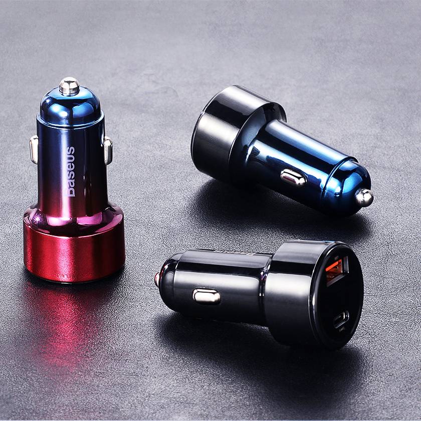 Tẩu củ sạc nhanh đa năng dành cho xe hơi / xe ô tô 2 cổng USB hiệu Baseus Dual-USB (45W - 6A, Công nghệ sạc nhanh Quick Charge 3.0 / Quick Chagre 4.0, 2 cổng USB Car Charger)           HỖ TRỢ SẠC NHANH Được trang bị 2 cổng sạc chuẩn USB , công suất lên đến 48W và dòng điện 6A, hỗ trợ sạc nhanh chuẩn Quick charge 3.0 / 4.0 và nhiều chuản sạc nhanh khác cho tốc độ sạc nhanh đáng kể so với các thiết bị thông thường . Bạn có thể dùng để cấp nguồn hoặc sạc pin cho nhiều thiết bị cùng lúc         CHIP SẠC THÔNG MINH Trang bị chip xử lý nguồn thông minh , tự động nhận dạng thiết bị, tự động ngắt khi đầy . Hỗ trợ nhiều mức điên áp và dòng điện khác nhau. Đảm bao tương thích với nhiều thiết bị khác nhau từ iPhone/ iPad cho đến các điện thoại Android như Sony , Samsung , HTC, LG, Xiaomi, Hà tiết kiệm hơn 45% thời gian sạc so với các sản phẩm cùng loại. Hai cổng sạc là 2 chip sạc nhanh giống nhau cho khả năng sạc nhanh như nhau ở 2 cổng. Adapter sạc sẽ tự điều chỉnh dòng điện qua từng giai đoạn sạc, sạc nhanh ban đầu và chậm dần về sau để thiết bị được an toàn và tự ngắt khi đầy. Ngoài ra còn hỗ trợ bảo vệ điện áp, bảo vệ nghẽn mạch, chống tăng nhiệt độ khi sạc, chống quả tải điện áp, quá dòng,         HỖ TRỢ MỌI LOẠI SẠC NHANH Adapter hỗ trợ sạc nhanh hầu hết các tiêu chuẩn có mặt trên thị trường hiện nay của các thương hiệu lớn như Samsung, Huawei, Apple,Macbook          MÀN HÌNH LED BÁO ĐIỆN ÁP Trang bị màn hình LED thông minh báo cường độ dòng điện , điện áp trong từng giai đoạn sạc khác nhau, giúp bạn dễ dàng theo dõi quá trình sạc.         THIẾT KẾ NHỎ GỌN Thiết kế gọn nhẹ và dễ dáng mang theo, chúng sẽ không chiếm nhiều không gian trên xe của bạn.         KẾT NỐI ỔN ĐỊNH Thiết bị thiết kế với hợp kim chắc chắn và 3 chấu ghim cho kết nối ổn định và chắc chắn, không dễ bị rơi ra hay mất kết nối khi chạy xe         PHÙ HỢP NHIỀU THIẾT BỊ Thiết kế phù hợp cho mọi thiết bị và mọi loại xe hiện nay, bạn có thể sạc đồng thời 2 thiết bị và tốc độ sạc nhanh là như nhau.         THIẾT KẾ CHUYÊN NGHIỆP Với thiết kế hợp kim chắc chắn, bên ngoài được phủ lớp sơn tĩnh điện bền màu cộng với màu sắc vô cùng bắt mắt, sản phẩm cho một cái nhìn hoàn toàn mới về dòng sản phẩm tẩu sạc xe hơi         HÌNH ẢNH SẢN PHẨM