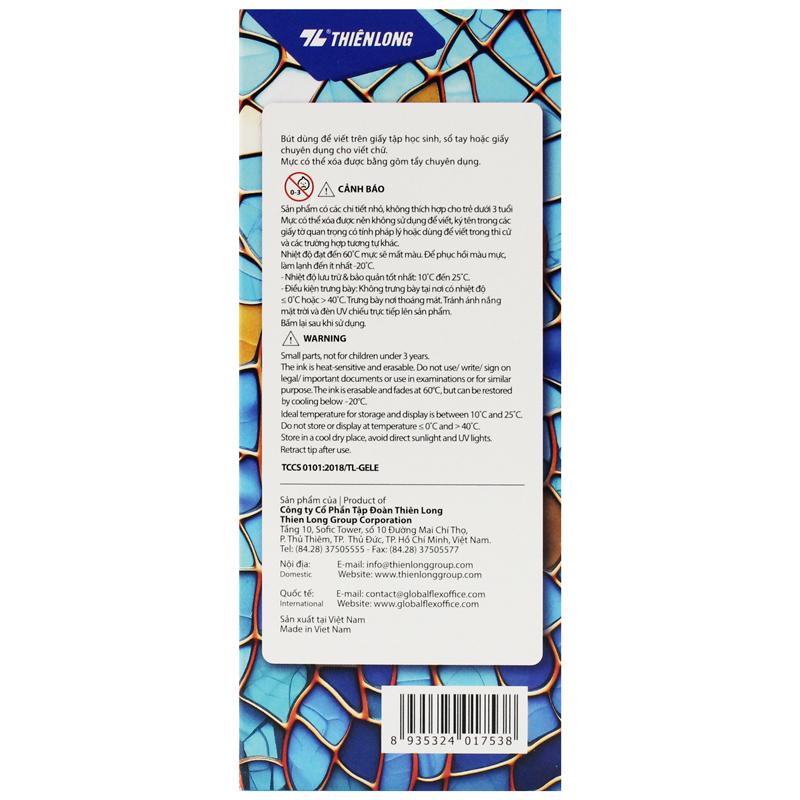 Mua tại TiktokHộp 10 Bút Gel Xóa Được 0.5 mm - Thiên Long GELE-007/V1 - Mực Xanh