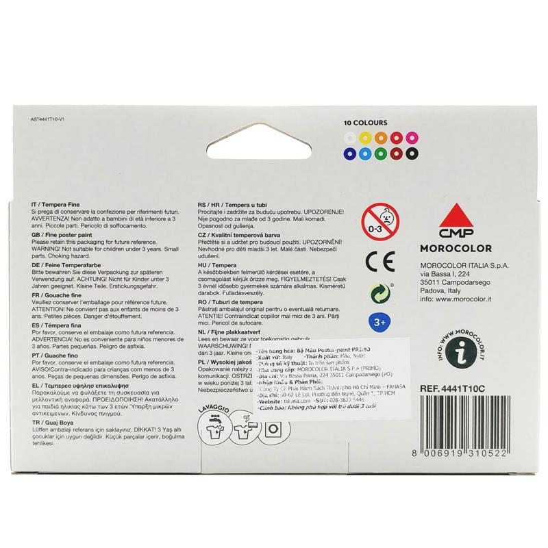 Hộp 10 Tuýp Màu Poster Paint 12ml PRIMO 444T10SAP 10 loại màu đậm đặc, chất lượng tốt khác nhau. Nên pha loãng phù hợp theo hiệu quả mong muốn, chịu được độ pha loãng lên