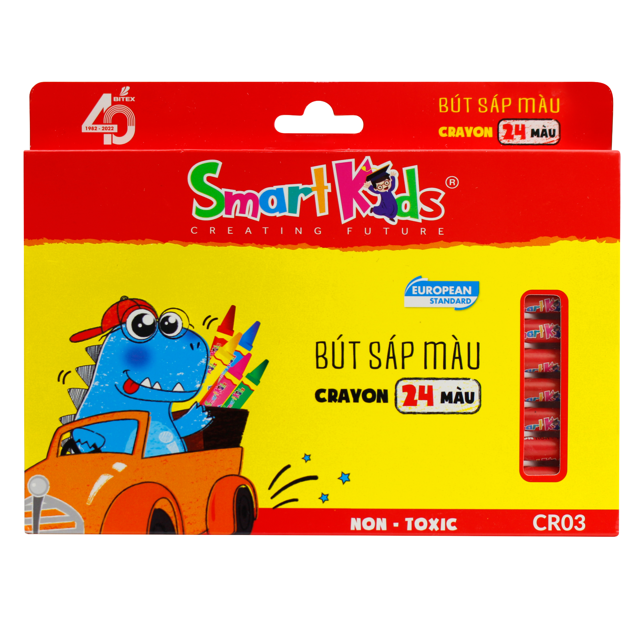 Sáp màu Dino 24 màu CR03 (24 màu/hộp) không chỉ giúp bé nhận biết về nhiều màu sắc khác nhau mà còn để trẻ tự do phát triển khả năng sáng tạo,pha trộn màu khi tô vẽ nâng cao năng khiếu mỹ thuật của m.ình