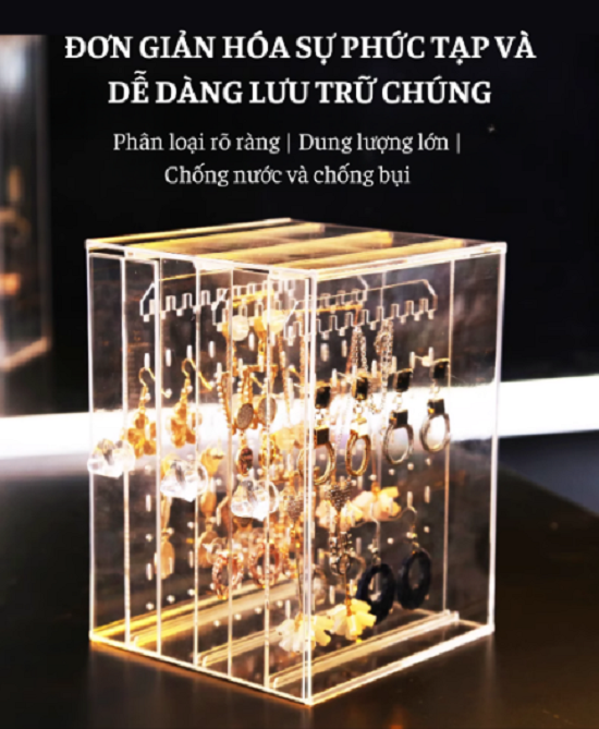 Hộp đựng trang sức, khuyên tai mica trong suốt dễ quan sát