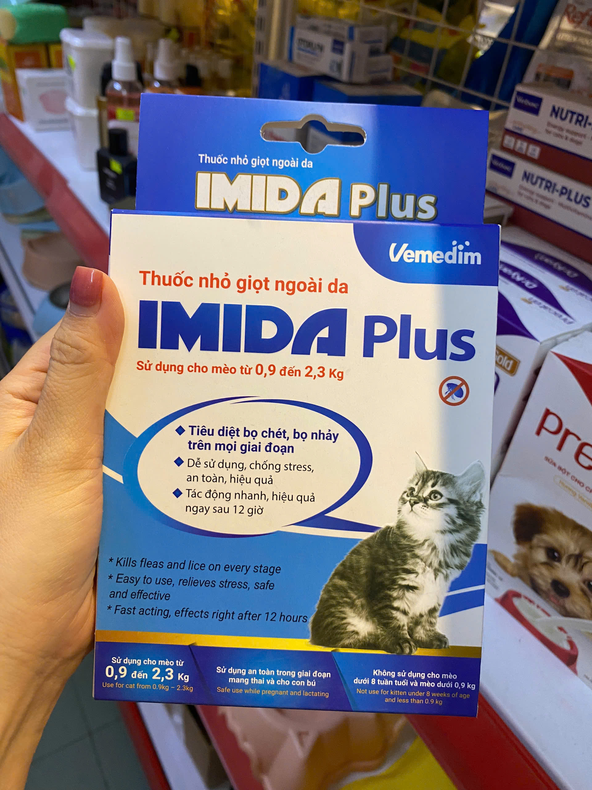 ✨Hộp 3 ống Imida Plus nhỏ gáy diệt rận, bọ chét trên mèo (Vemedim )