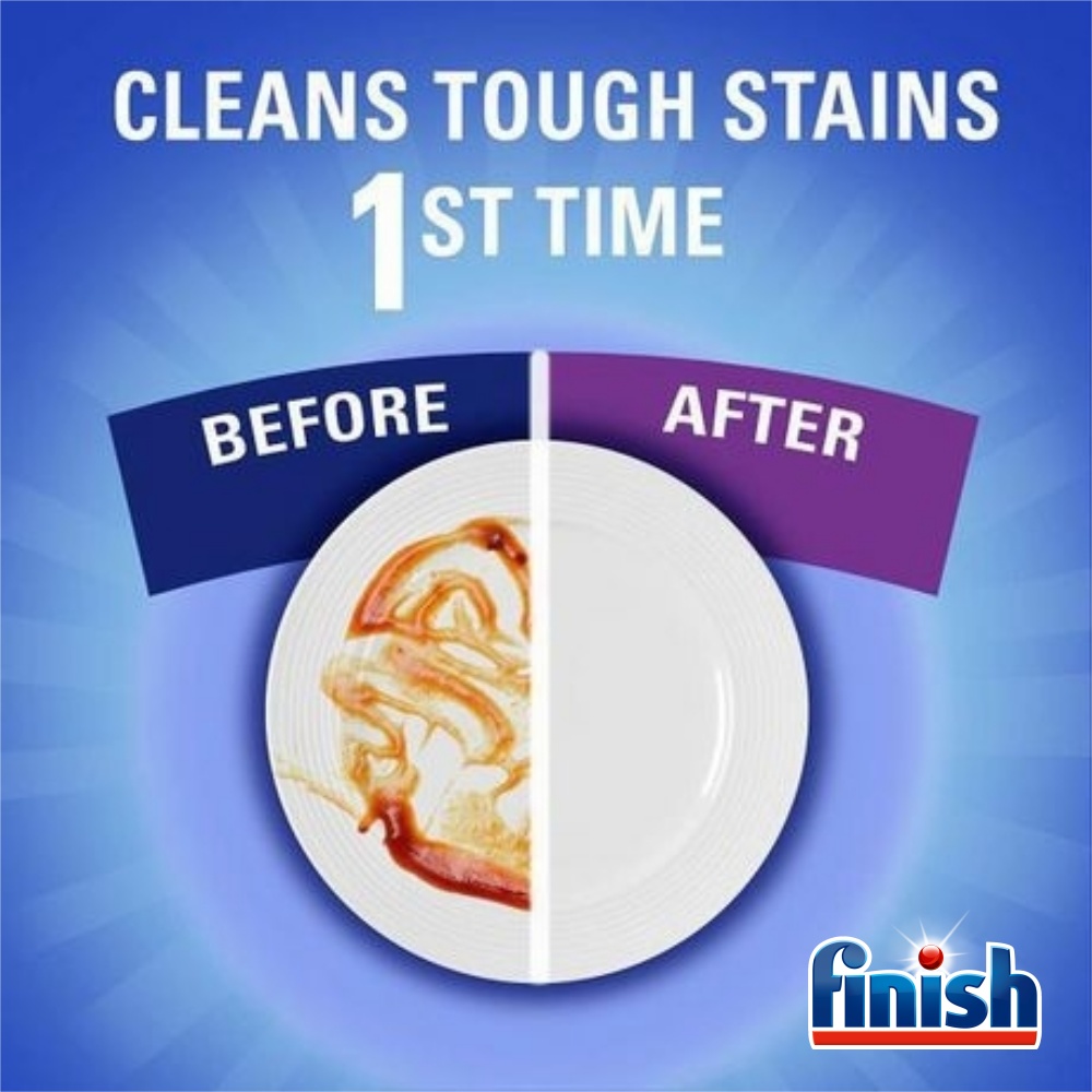 + Thiết bị GE đã thử nghiệm hơn 5.000 món ăn để chứng minh rằng viên rửa chén bát Finish có lượng tử làm sạch các món ăn trên bát đĩa và lấp lánh thủy tinh.