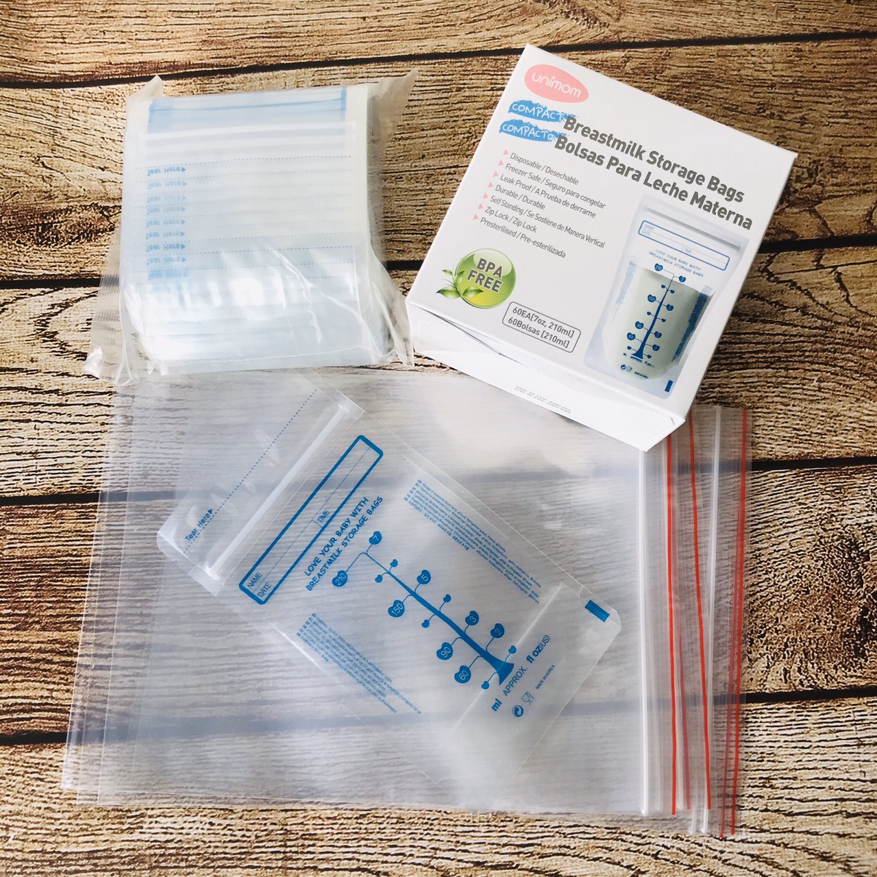 ✨Hộp 60 túi trữ sữa Unimom compact 210ml + tặng 5 túi zipper 18cm x 23cm