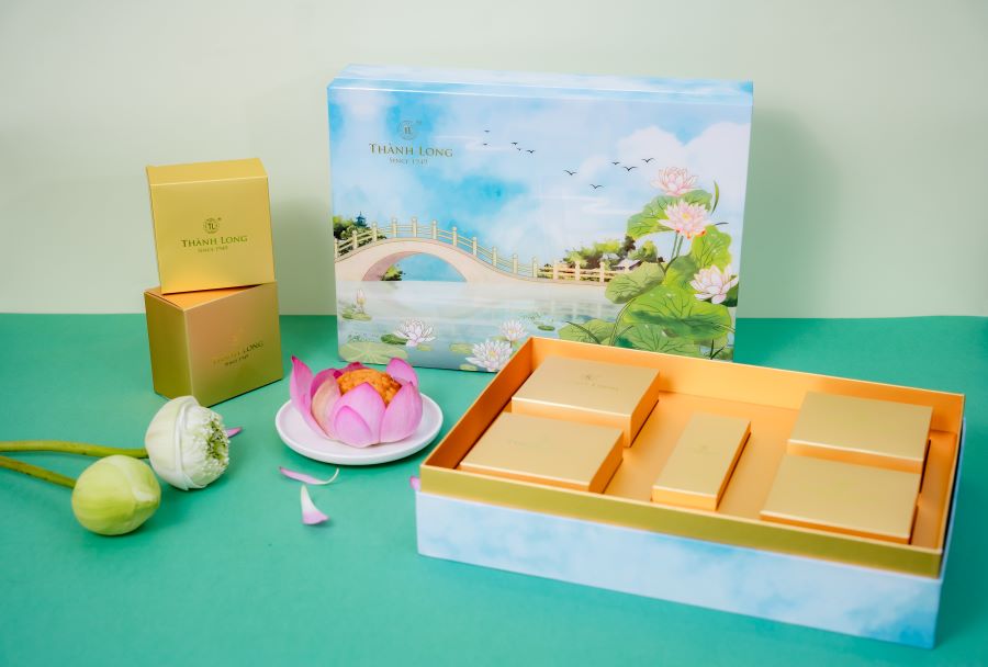 Hộp bánh trung thu 2 bánh 2 trứng 220g - Thành Long (440g) - Combo C: gồm Nhân hạt sen 2 trứng 220g Nhân khoai môn 2 trứng 220g - Combo D: gồm Nhân thập