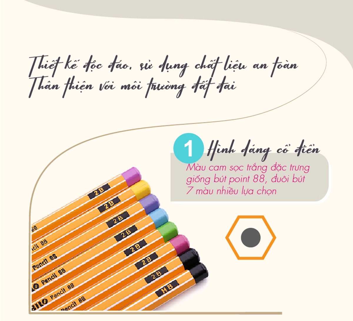 ️ Ruột chì mềm, nét đậm tùy thuộc vào các độ. ️ Thân gỗ mềm dễ chuốt, có thể sử dụng dao chuốt, gọt chì ️ Bút dùng để viết, vẽ phác thảo trên nhiều